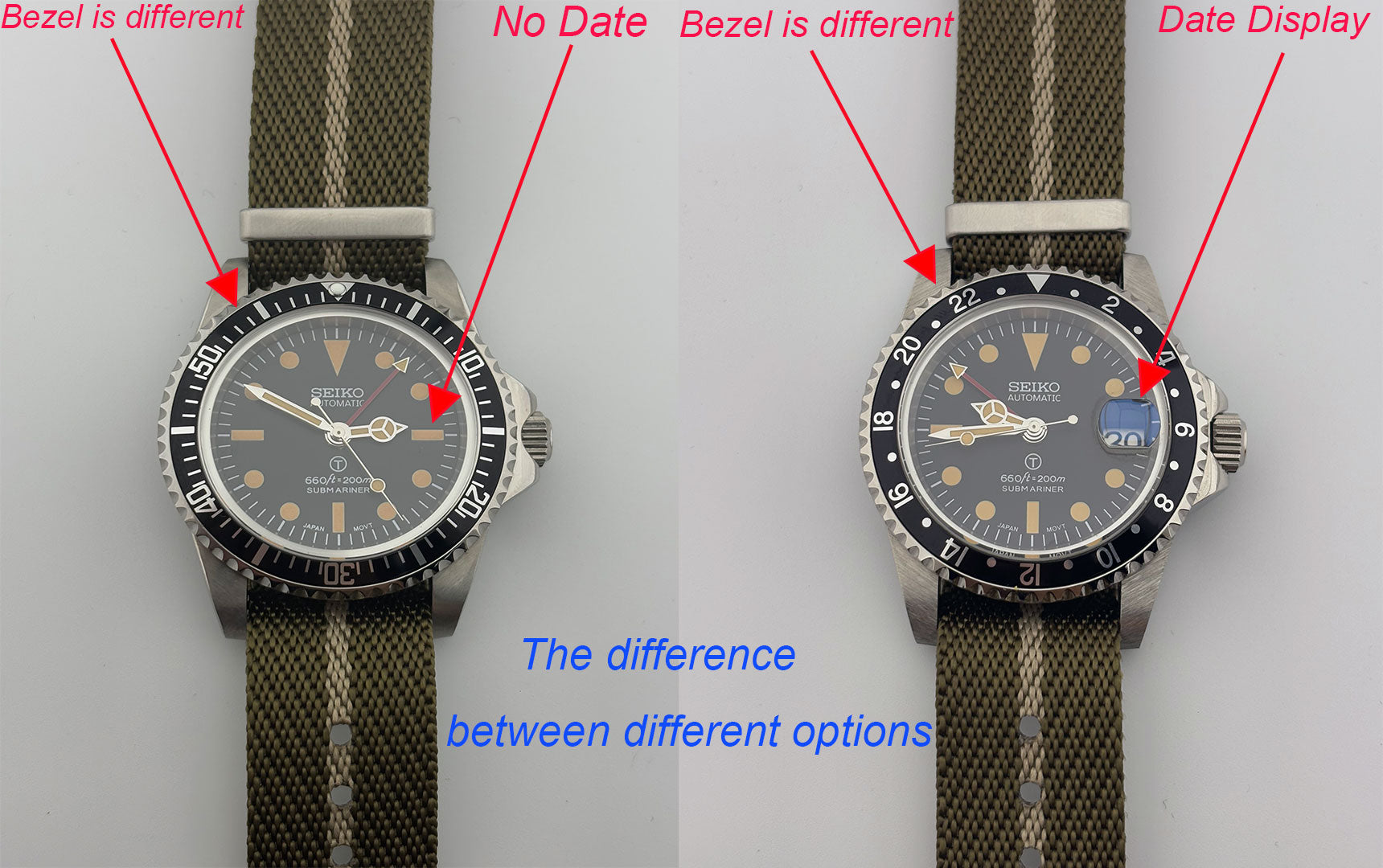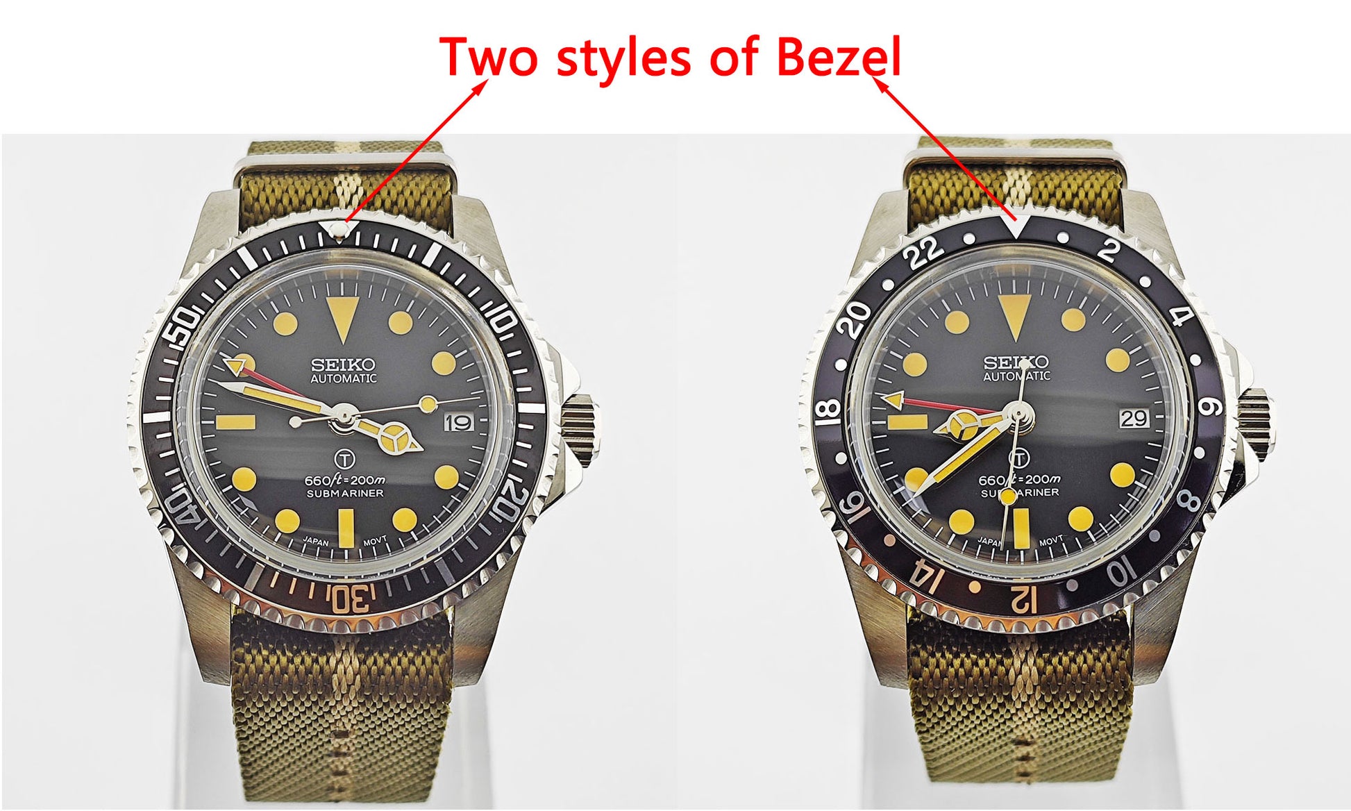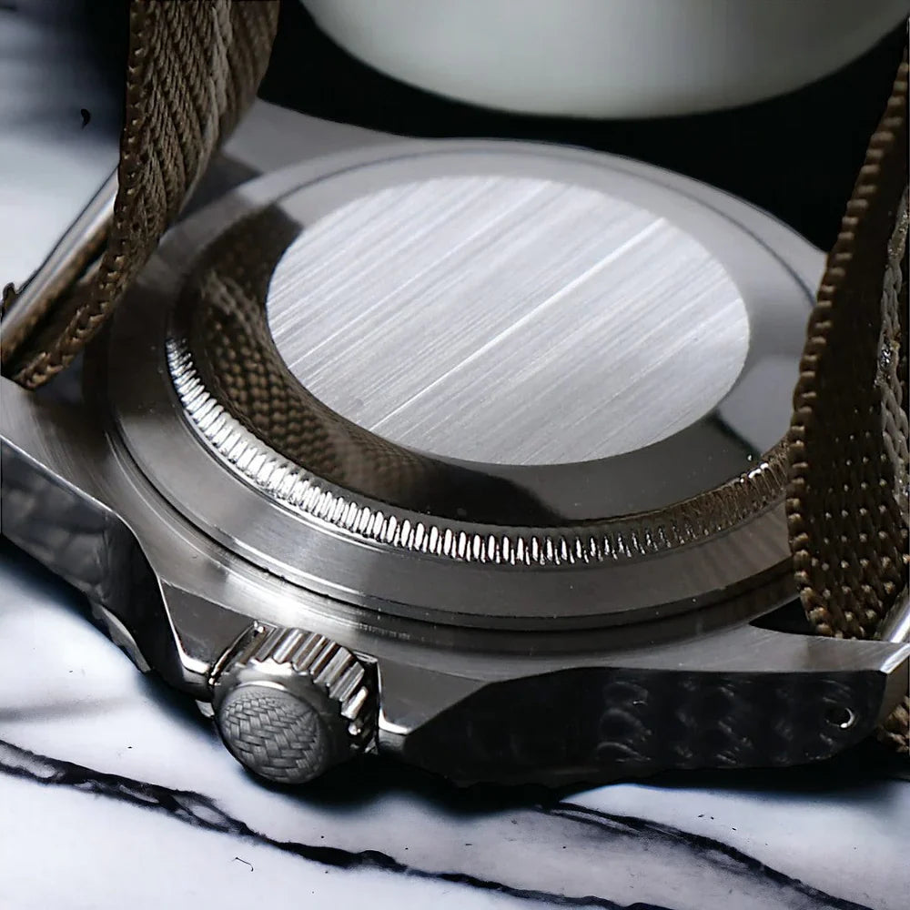 Dive into history with our Custom Seiko MilSub Vintage GMT Mod Watch, a tasteful blend of renowned craftsmanship and the classic aesthetics of the iconic military submariner designs. Powered by the reliable NH34 Automatic Movement, this timepiece stands as a beacon of reliability and precision. It's crafted for aficionados who value both historical significance and modern watchmaking brilliance.